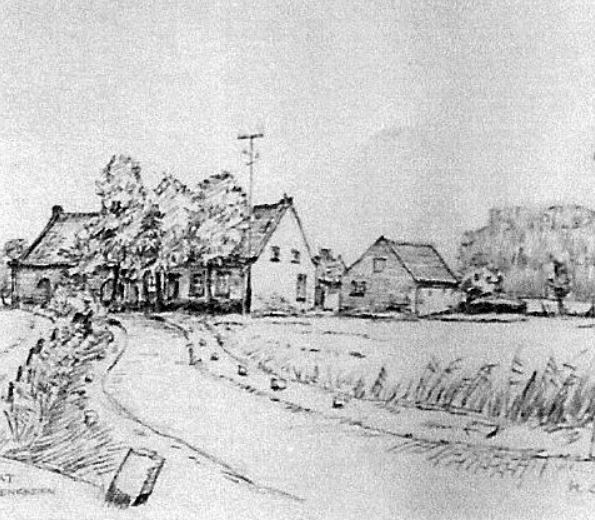 Rechts daarvan, op dezelfde hoogte, de Blauwe hoeve (die overigens wit was) en vervolgens aan de linkerzijde de Annahoeve.