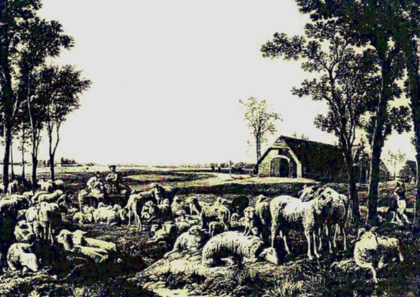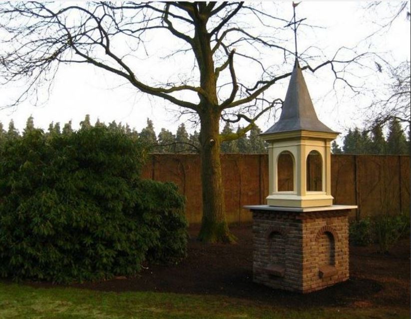 “”Op bovenstaande originele foto ziet u dat het torentje op een pilaar stond naast de schaapskooi.