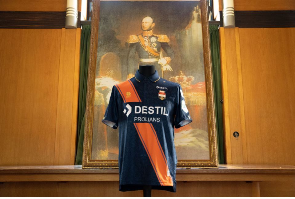 Het ontwerp is geïnspireerd door barok, de kunststijl uit de zeventiende eeuw die kenmerkend is voor het koninklijk huis zo laat de club weten De klassieke oranje sjerp maakt dit shirt een ultieme ode aan Koning Willem ll .In de donkerblauwe basiskleur is het sierlijke chique barokpatroon subtiel in het gehele shirt terug te zien.